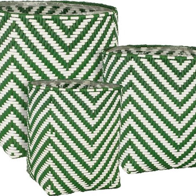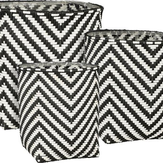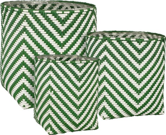 Productbeschrijving: Ga voor meer sfeer in de tuin met deze Merlijn plantenmanden van Mica Decorations. De plantenmanden voor buiten zijn vervaardigd van plastic en hebben een trendy patroon dat perfect bij verschillende stijlen past. De set bestaat uit drie manden met afmetingen van H30 x Ø27 cm, H32 x Ø30 cm en H35 x Ø34 cm. Deze formaten zijn ideaal voor planten of een klein boompje. De binnenkant van de manden is voorzien van een plastic liner, waardoor je er gemakkelijk een plant in kunt potten. Van alle drie de modellen zijn elk 8 sets inbegrepen.