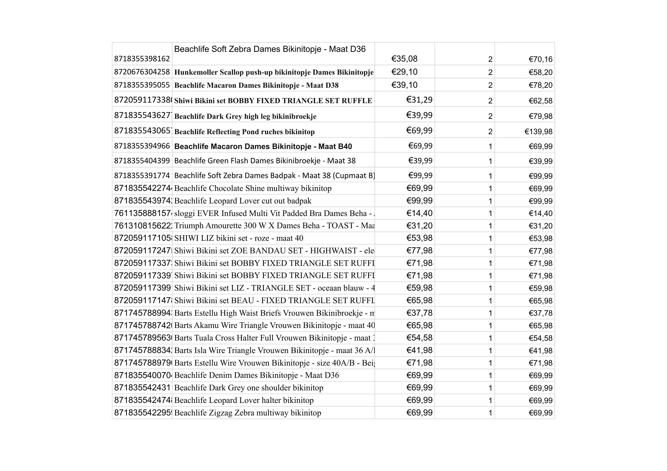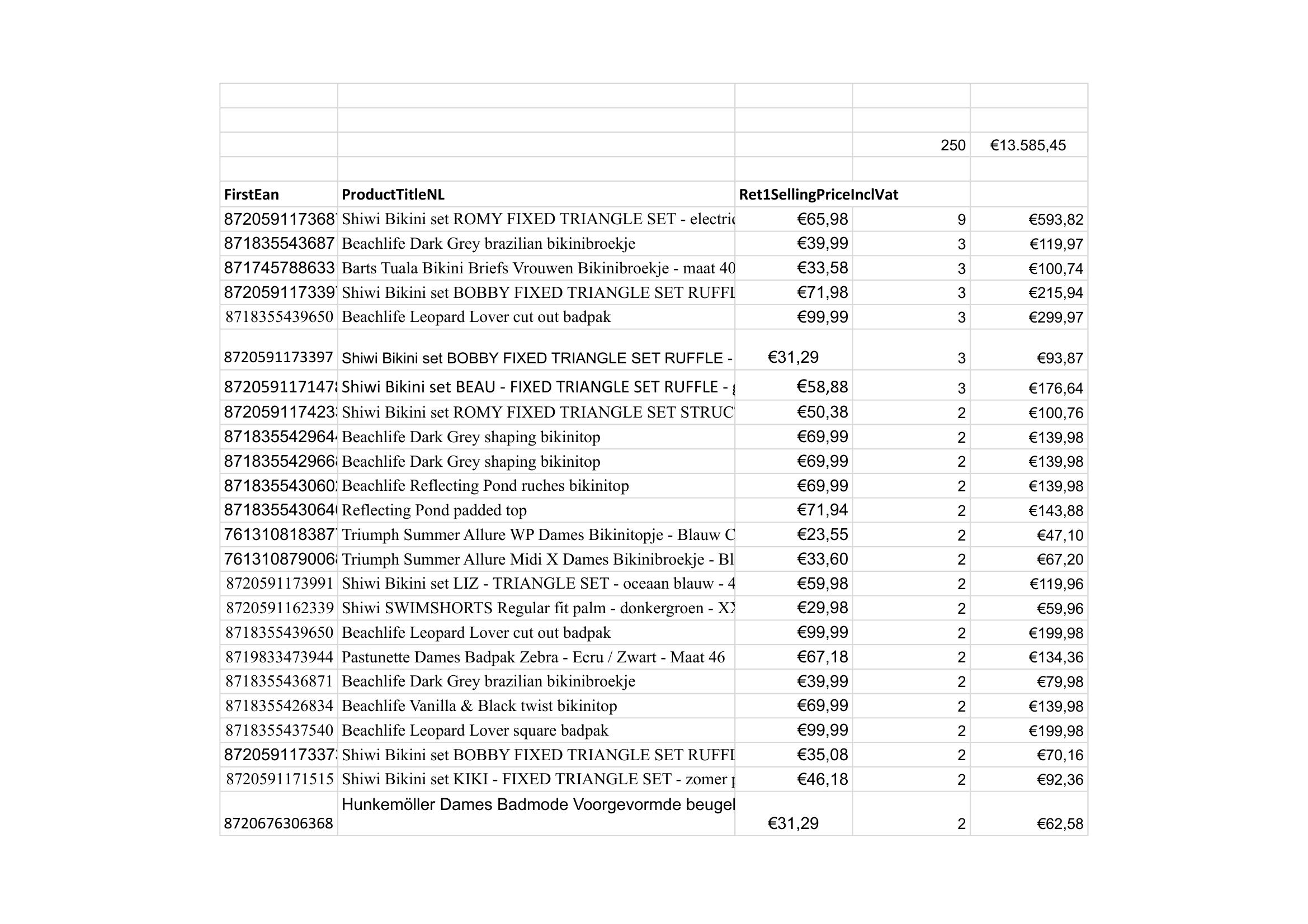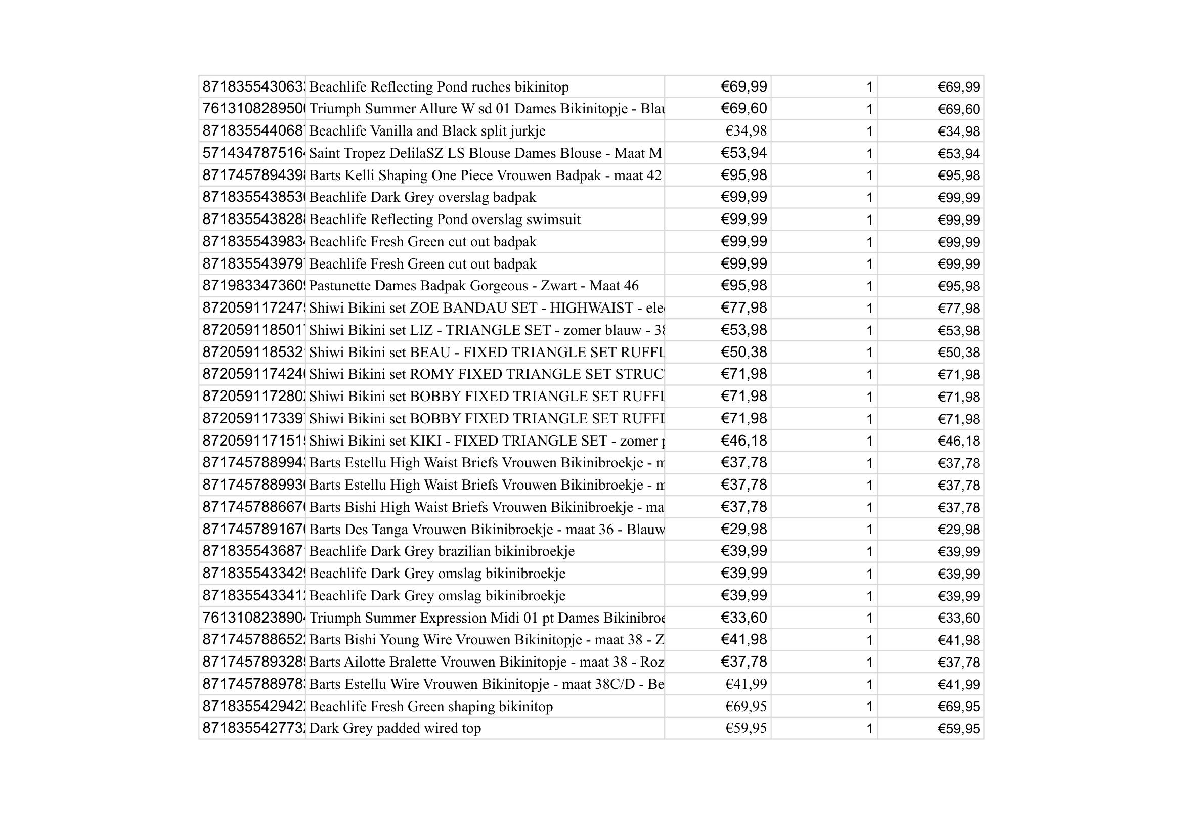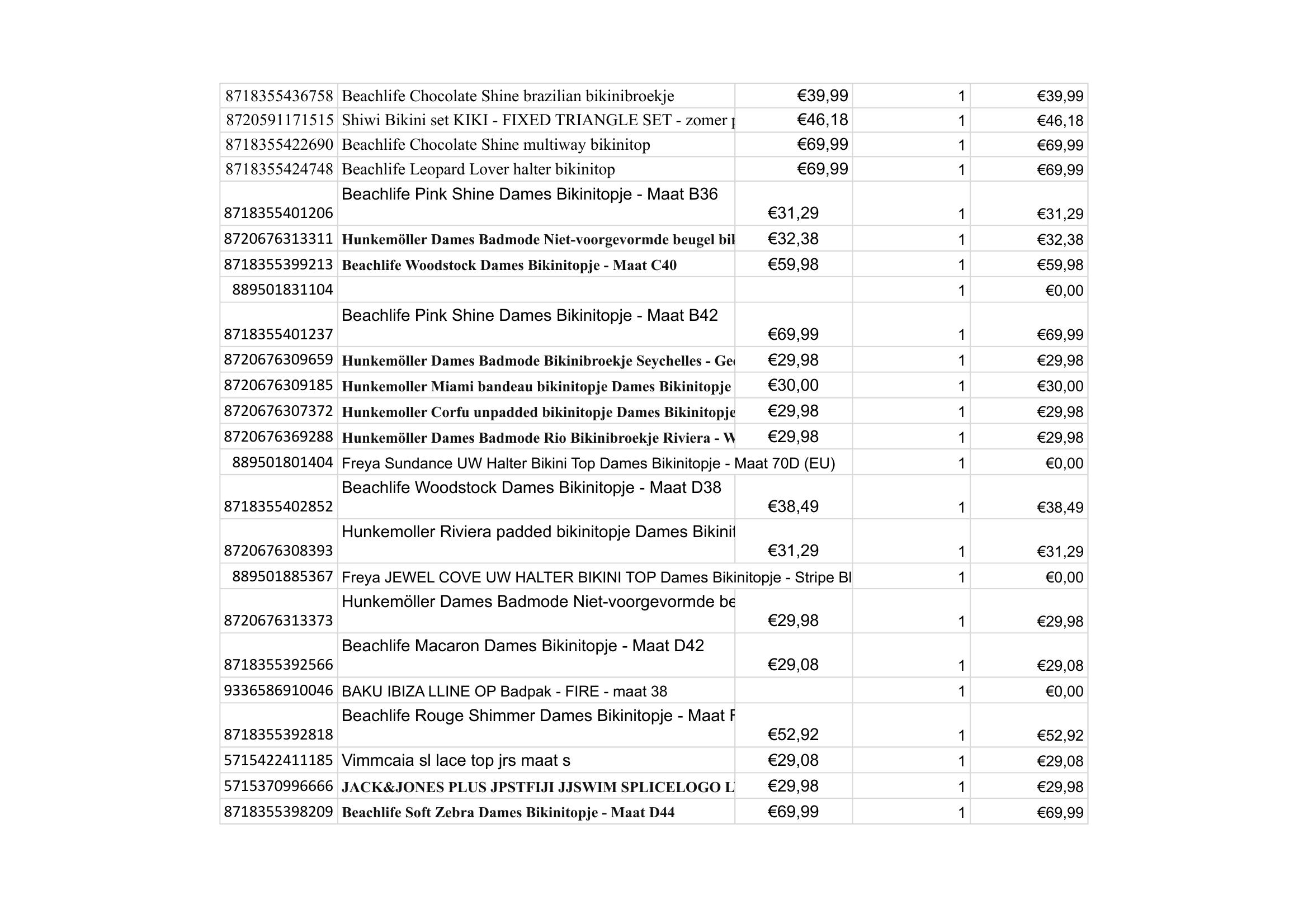 Productbeschrijving: Partij van diverse badmode van onder andere de merken Beachlife, Shiwi en Barts. Alle badmode is nieuw en de partij bevat vele verschillende modellen en maten. Zie de foto's voor de volledige lijst met producten, merken, maten en verkoopwaardes.