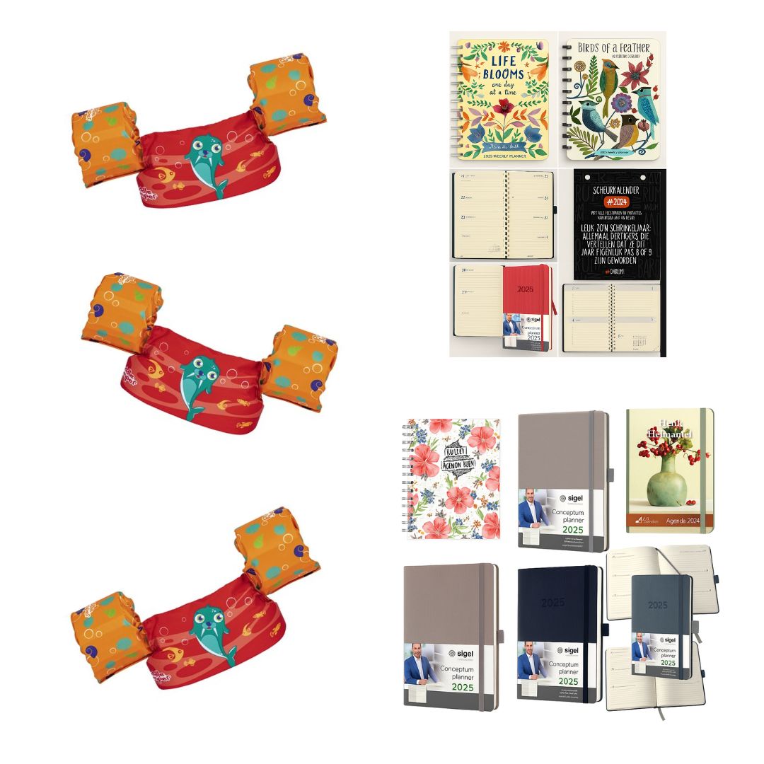 Over de 270x bestway puddle jumper verstelbare zwembandjes en 1743x boeken, agenda's en kalenders