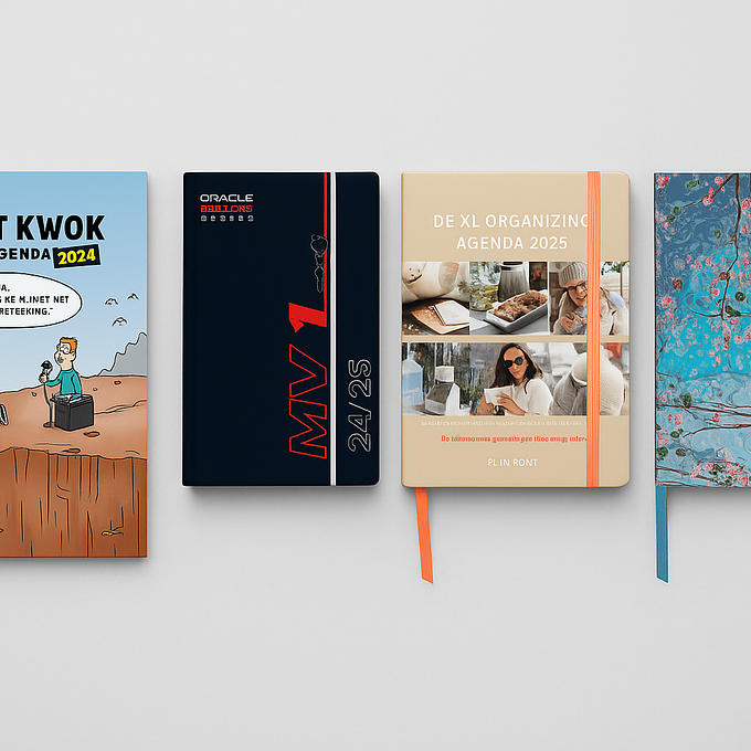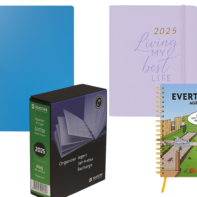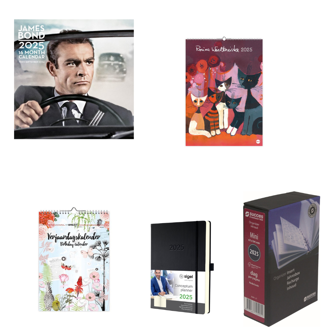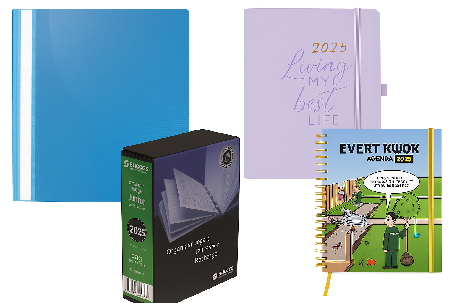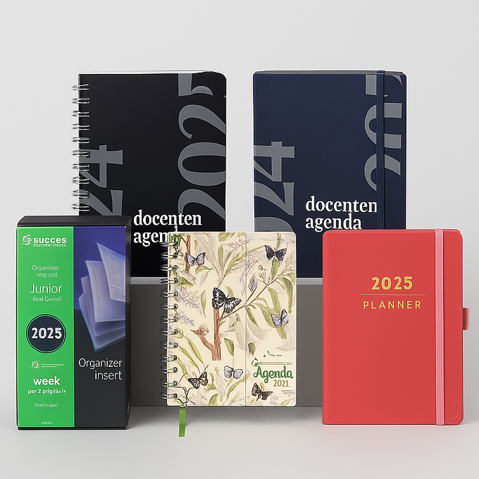Over de 32x Merlijn set. van 3 plantenmanden en 2 palletdozen met agenda's, boeken en kalenders.