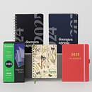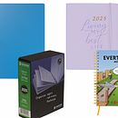Productnaam: Mica Decorations Merlijn Plantenmand - Set van 3 en 2 palletdozen met agenda's, boeken en kalenders.
