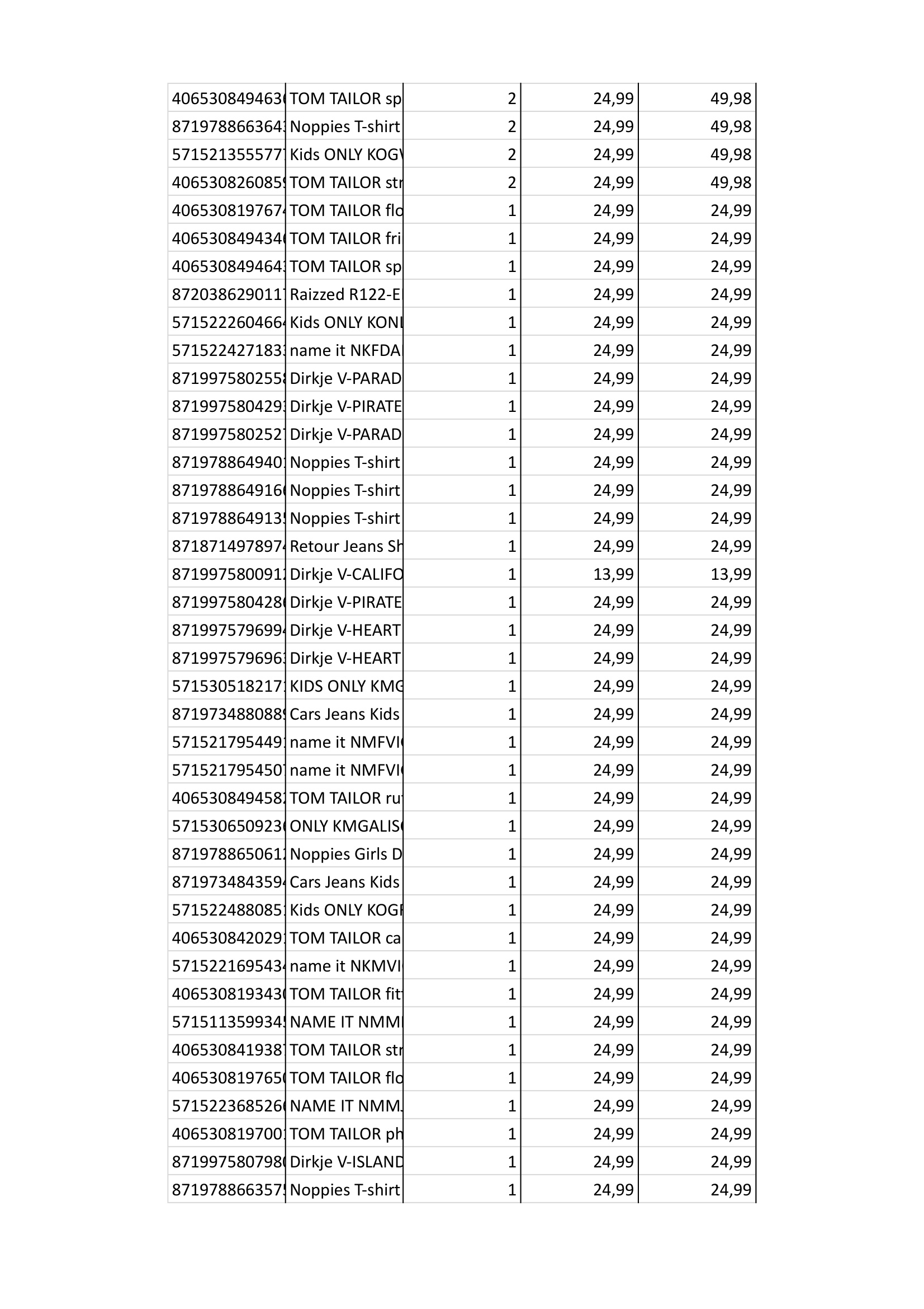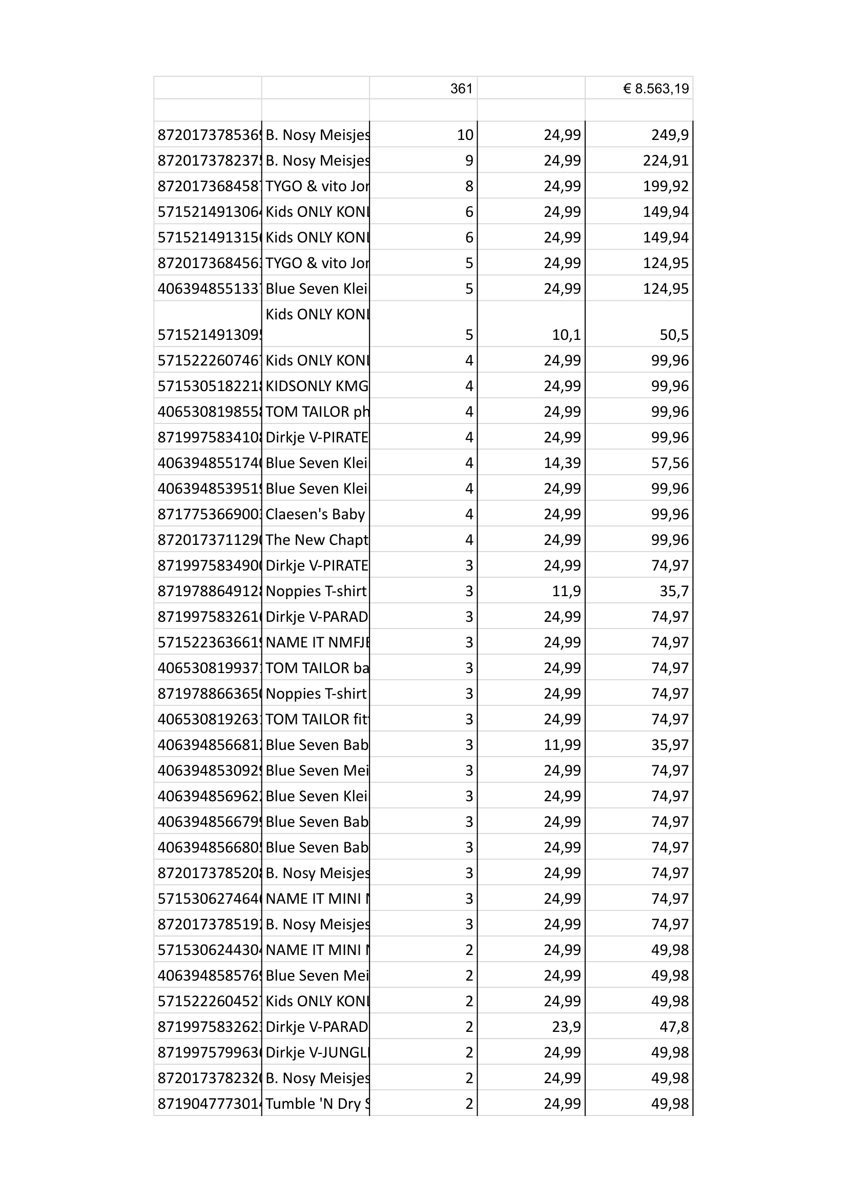 361x Kinderkleding (B. Nosy, Name IT, Noppies, Moodstreet, Babyface etc.)
