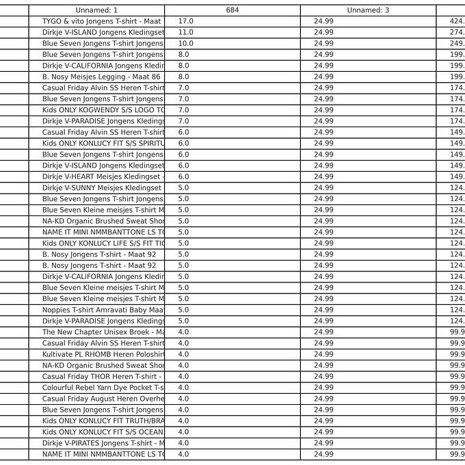 Over de 684x Kinder-, dames- en herenmode Diverse merken, maten en modellen (Vingino, Jack&Jones, Tom Tailor etc.)