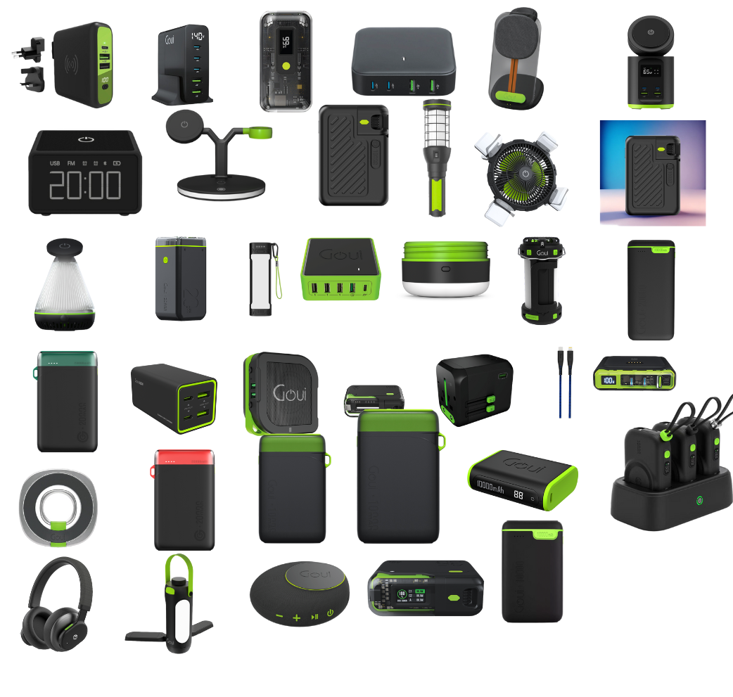 Over de 68x Goui elektronica (Powerbanks, headsets, spreakers etc.)