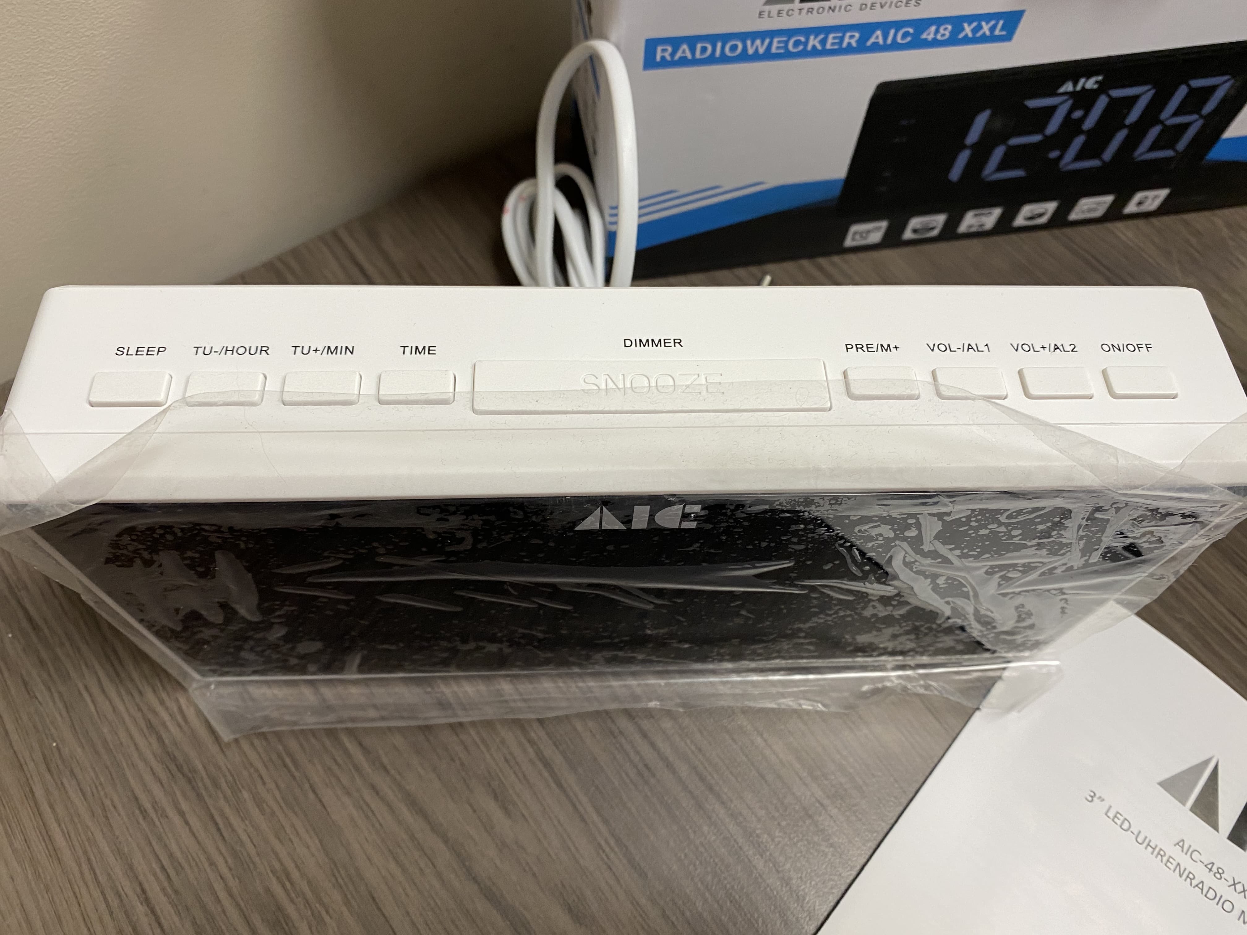 Productbeschrijving: De AIC 48 XXL - wit heeft een grote, dimbare led display. De wekkerradio heeft 5 dimniveau's, waarmee je de helderheid van de display bepaalt. Met de dubbele alarmfunctie stel je verschillende wektijden en dagen in. Ideaal als jouw partner eerder uit bed moet dan jij. Je hebt dan geen omkijken naar een extra wekker. Je stelt als het ware 2 profielen in waarbij je ook verschillende radiostations kan selecteren. Dát is pas lekker wakker worden. In de wekker zit een backup-batterij. Deze komt erg goed van pas in het geval van een stroomstoring. Zo hoef je niet bang te zijn dat je te laat op je werk komt.