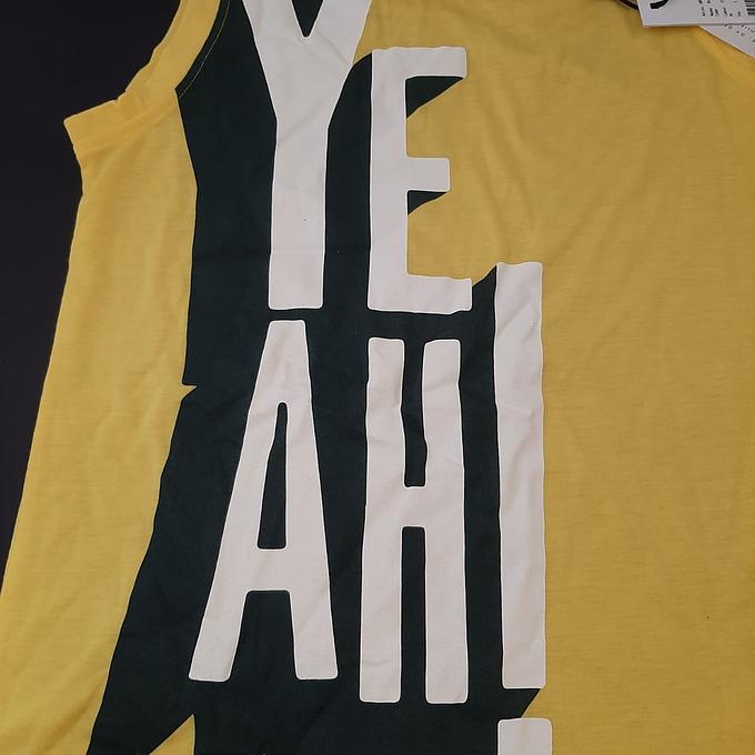 Productbeschrijving: B-Active Beachlife buttercup shirt, no sleeve maat S is een vrolijk en zomers shirt met de print "YEAH!" Heeft een kleine vlek, zie foto 4