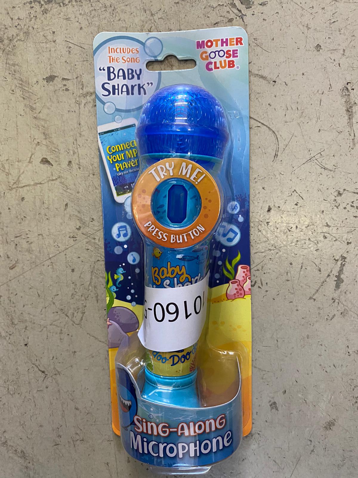 Productbeschrijving: De geheel nieuwe Baby Shark meezingmicrofoon is er! Zing je met me mee? Zing mee met de Baby Shark meezingmicrofoon met ingebouwde muziek of sluit gewoon je mp3-speler aan en speel met je eigen afspeellijst. Wees de ster in je eigen optreden met knipperende lichten. Zing mee met ingebouwde muziek of sluit je apparaat aan en zing mee met alles wat je verlicht. Dit is het perfecte cadeau of verjaardagscadeau voor je kleintje. Kenmerken: ingebouwde musicaux-aansluiting maakt verbinding met elk apparaat mogelijk. Knipperlichten Baby Shark-afbeeldingen nu bestellen!