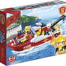 Productbeschrijving: Er is een grote brand uitgebroken op een schip in de buurt van de haven van de stad. De brandweerboot scheert over de golven op weg naar de brand. De brandweermannen kunnen de vlammen gelukkig snel blussen en is het schip met alle passagiers gered. Met de trekhaak kun je het schip naar de haven brengen en de passagiers naar het vasteland brengen. Wat is deze brandweerboot toch handig in zulke situaties! Bouw de brandweerboot uit de brandweer serie met de bouwstenen van BanBao en ervaar urenlang plezier! Deze speelset bestaat uit 2 figuren, een brandweerboot en diverse accessoires.
