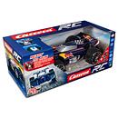 Productbeschrijving: Auto RC Carrera Red Bull NX1, een op afstand bestuurbare elektronische auto in de traditionele kleuren van Red-Bull. De afstandbestuurbare auto is gemaakt van kunstof en is geschikt voor jongens. In de verpakking zit: 1 afstandbestuurbare auto, 1 zender, 1 accu en 1 oplader. De auto eheft een topsnelheid van iets meer dan 20 km / u. Gedurende ongeveer 40 minuten neemt de off-roader je ruw en soepel over op een schaal van 1:16. De krachtige LiFePo4-accu moet dan ca. 80 minuten