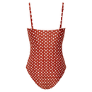 Productbeschrijving: Het Geisha Chic Multiway badpak van Cyell is een roestkleurig bandeau badpak met witte dots. Dankzij de voorgevormde cups en beugel biedt het badpak een goede ondersteuning. En door de verstelbare bandjes en een handig klik-systeem is het badpak op meerdere manieren te dragen, namelijk als halter, over de schouders, gekruist op de rug en strapless