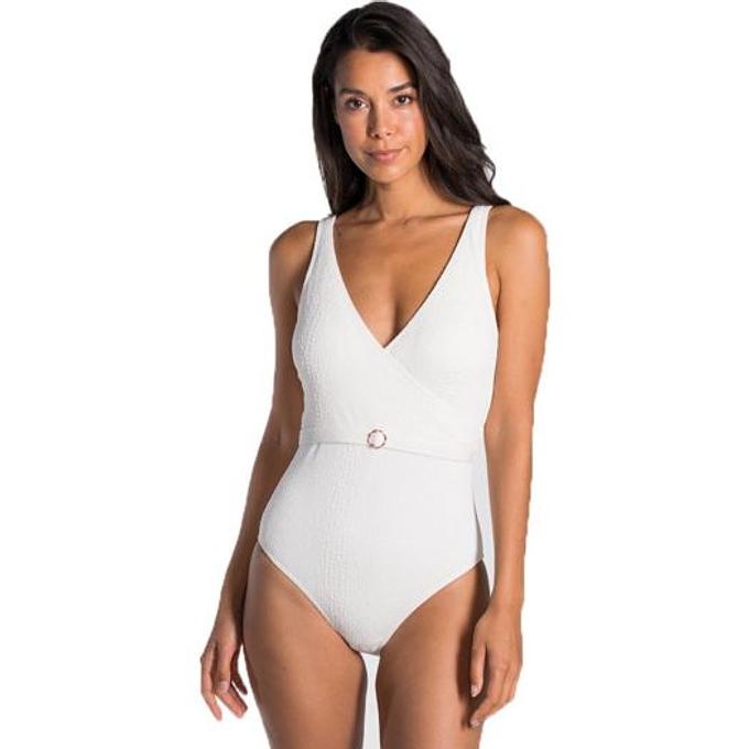 Productbeschrijving: Het Cyell Textured Mist Padded badpak is een elegant overslag badpak met V-hals in het gebroken wit met subtiele gouden details, gemaakt van een licht getextureerde stof voor een extra bijzondere uitstraling. Het badpak heeft voorgevormde cups en verstelbare schouderbandjes voor een perfecte pasvorm.