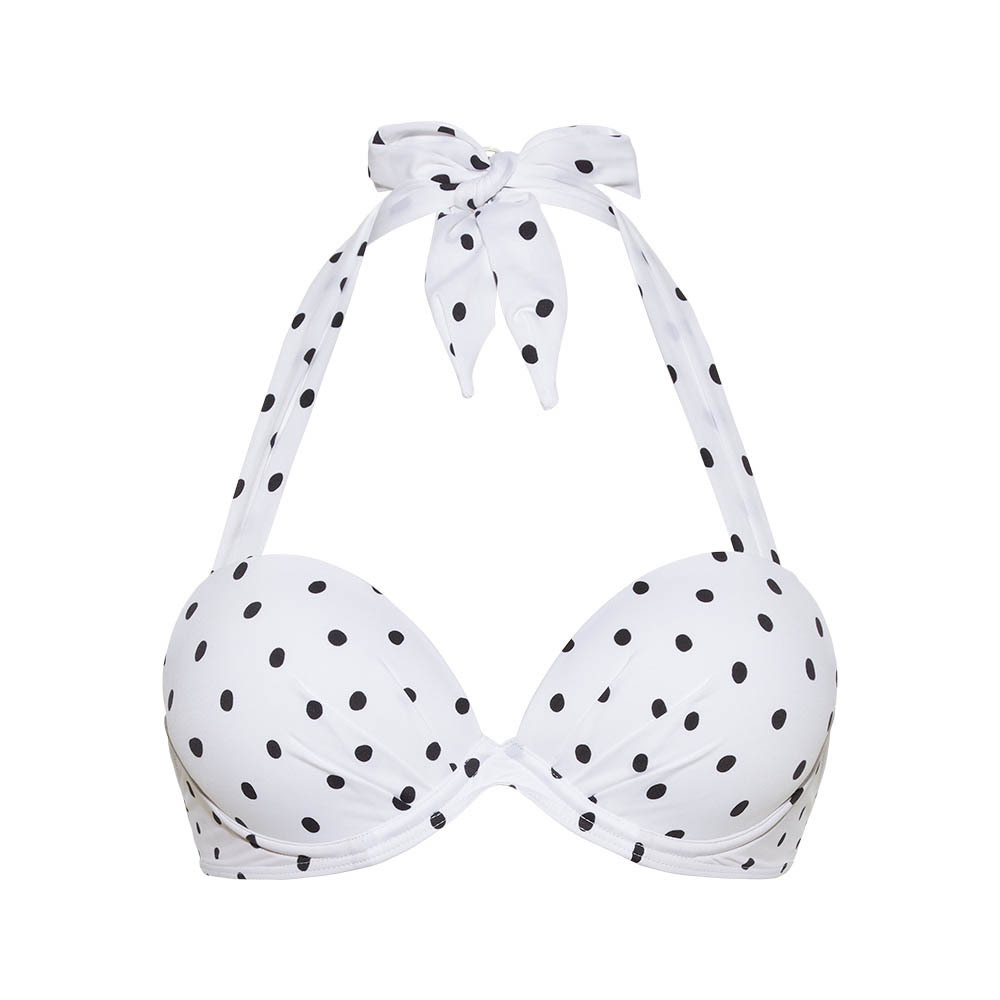 Productbeschrijving: De Cyell Top Bikini Padded Wired is een retro polkadot print bikini voor dames. Deze Bardot bikinitop heeft een foamcup en beugels