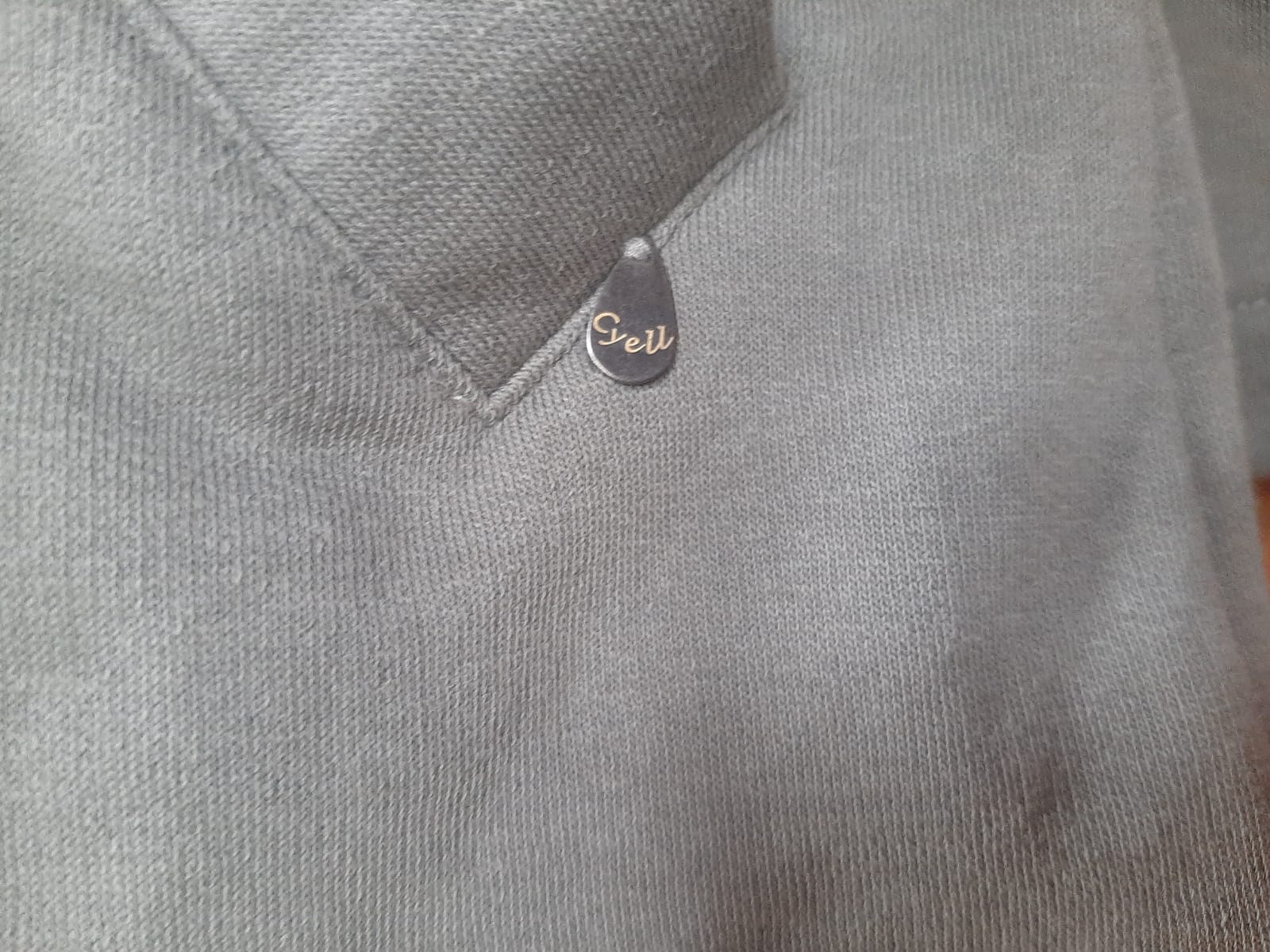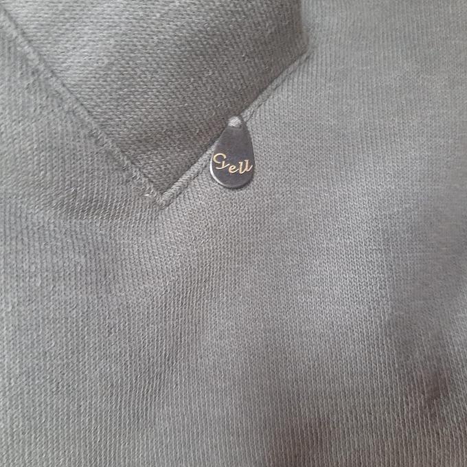Voorzien van: Knoopsluiting, steekzakken, v-hals