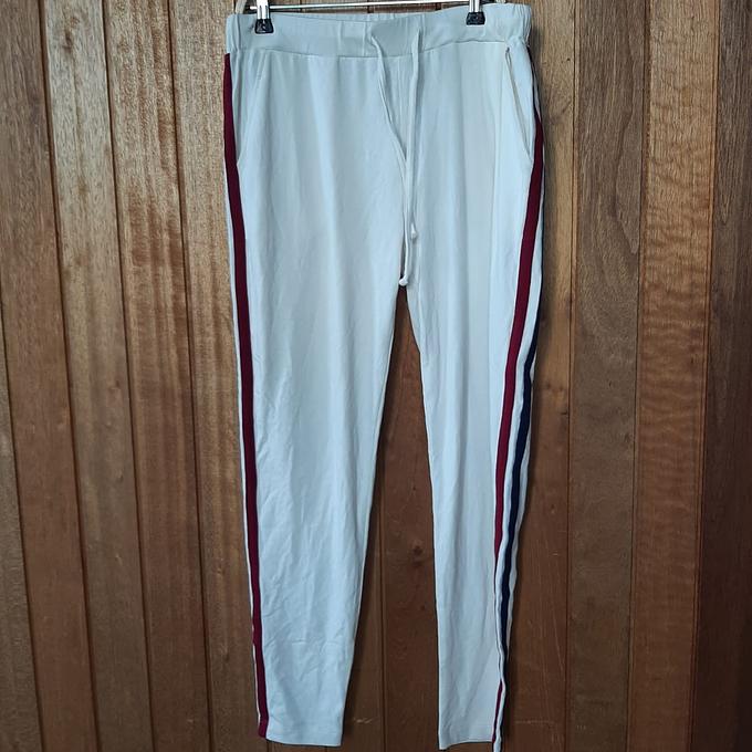 Productbeschrijving: Cyell Joggingbroek White Stripe in maat 38 heeft een leuke kleurencombinatie. De broek heeft steekzakken, zijstrepen en elastieken taille met een strikkoord.