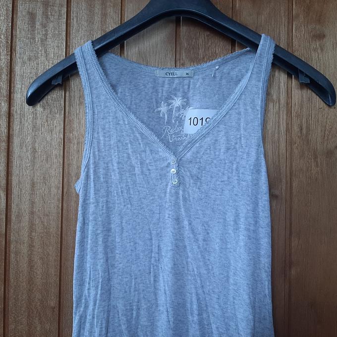 Productbeschrijving: Cyell Jurk Relaz Unwind in maat 36 is gemaakt van katoen en elasthaan. De jurk is mouwloos, grijs en heeft sierknoopjes