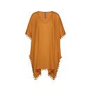 Productbeschrijving: Voel de Ibizia sferen in deze Sunset Ochre tuniek met boheemse pompons. Perfect om over de bikini aan te trekken om drankjes te doen op de boulevard.