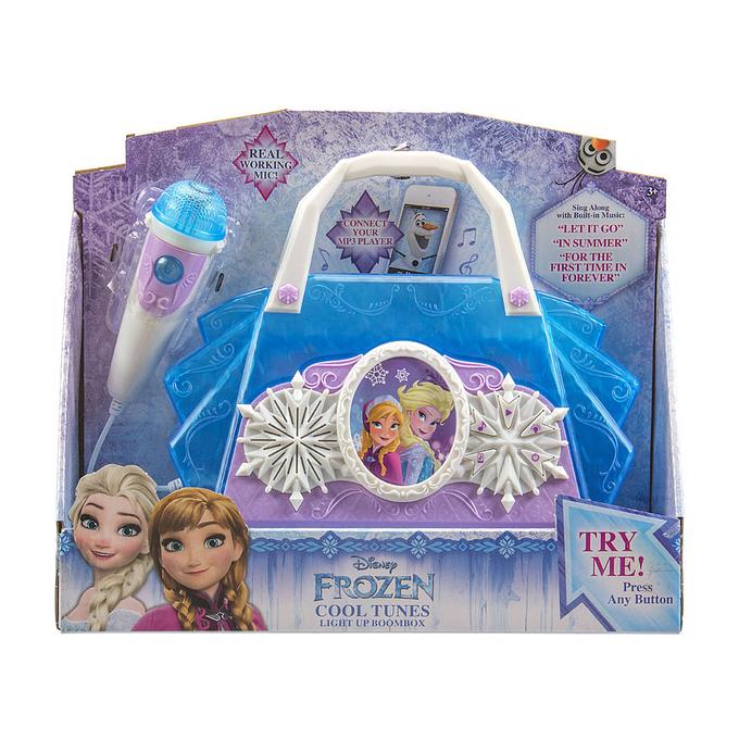 Productbeschrijving: Jonge artiesten kunnen met deze Light Up Boombox-karaokeset lekker meezingen met de leukste liedjes uit Disney Frozen. De boombox heeft een unieke vormgeving met een afbeelding van Elsa en Anna en is uitgerust met ingebouwde lichten die knipperen op de maat van de muziek. De paarse microfoon werkt bovendien echt en je kunt ook nog eens je eigen MP3-speler aansluiten. Laat je zangtalenten horen en zing je favoriete liedjes!