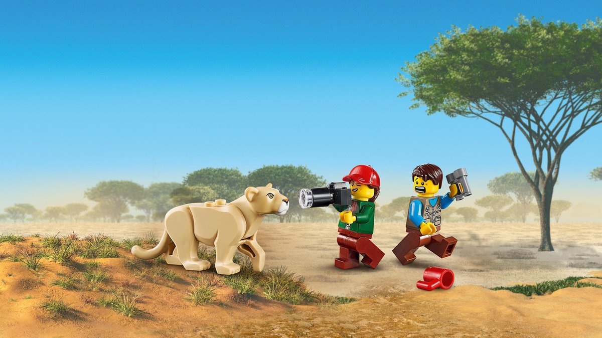 Productbeschrijving: Hè, een boom met een camera? Ga op safari met deze coole LEGO® City Safari off-roader met zebrapatroon. Grijp je verrekijker, klim op het dak van de stoere terreinwagen en wacht af. Yes! Daar loopt een leeuwin! En er is een papegaai op het boomkostuum van de fotograaf gaan zitten! Maak nu een paar geweldige close-ups voor je verzameling. Een wild avontuur voor de LEGO City liefhebbers van wilde dieren!