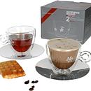 Productbeschrijving: 4-delige Set thermo-glazen | 300 ml | 2 x dubbelwandige theekopjes met kerstdecoratie en 2 x roestvrijstalen schotels | met de hand gemaakt - elk artikel is uniek Voor 2 personen aan het ontbijt en koffietafel, optimaal voor cappuccino, koffie, cacao of thee maar ook glühwein, Lumumba en andere winterse warme dranken Het hoogwaardige borosilicaatglas van de mok is niet alleen bestand tegen warmteschokken, maar zorgt in combinatie met de dubbele glazen wanden voor een thermische isolatie Dit houdt de dranken aanzienlijk langer koud of warm en voorkomt condensatie. De prachtig plat vervaardigde schotel van hoogglans gepolijst roestvrij staal maakt het doordachte design compleet
