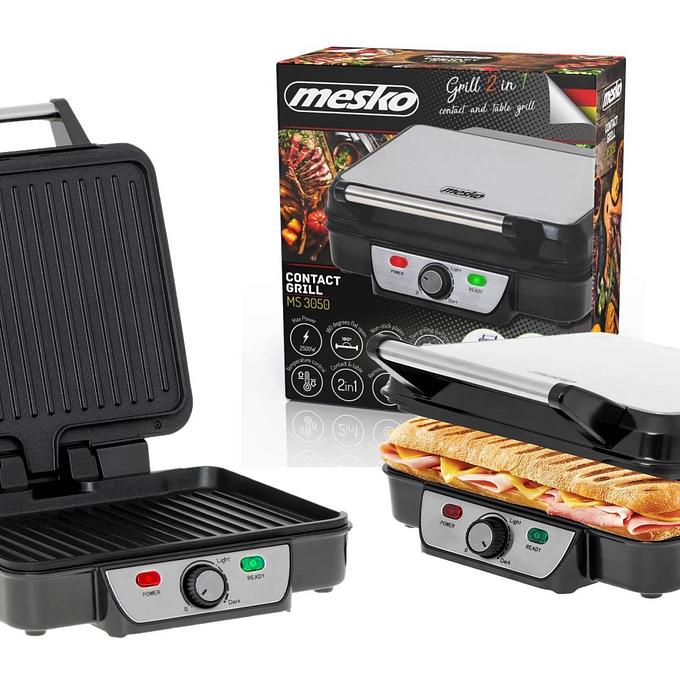 Productbeschrijving: Met het maximale vermogen van 2500 W Mesko MS 3050 elektrische grill kunt u een breed scala aan warme gerechten bereiden - van hamburgers, steaks, kip en ander vlees tot gegrilde kaas en groenten. De verwarmingsplaten zijn bedekt met een Teflon-coating waardoor het eten niet blijft plakken, zodat je de grill binnen enkele seconden schoonmaakt. Je kunt er ook gezondere gerechten mee bereiden omdat je geen vet hoeft te gebruiken. De MS 3050 heeft een grilloppervlak dat groot genoeg is om een maaltijd voor een gezin of een groep vrienden te bereiden.