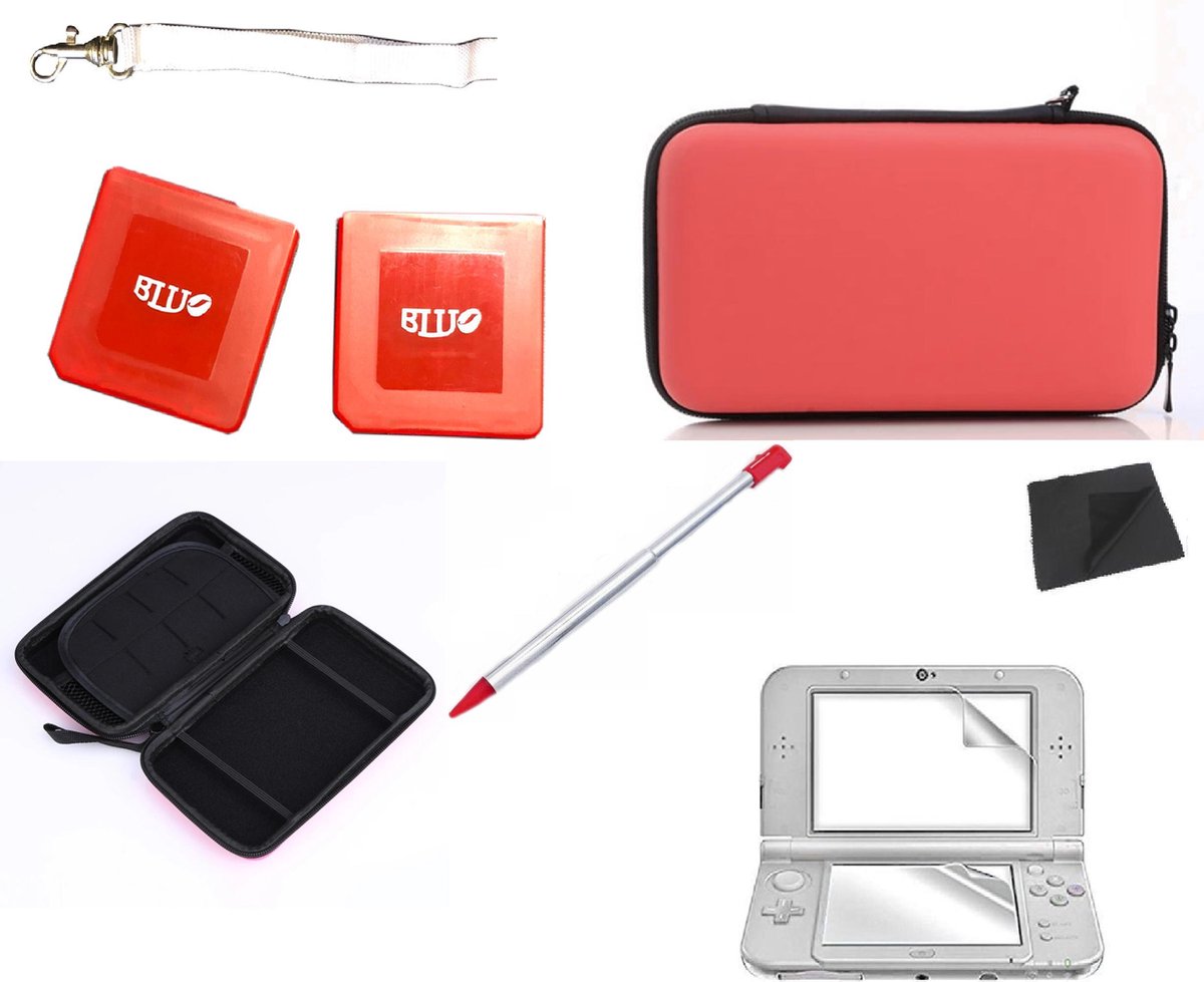 Voorzien van: 1x Uitrekbare Touch pen 1x 3DS Rode Case 2x SD Game bescherming 1x Koord Bevestiging voor de Case 1x Microvezel schoonmaak doekje 1x Scherm Bescherming 1x Queggee Card om vuil uit de DS te halen