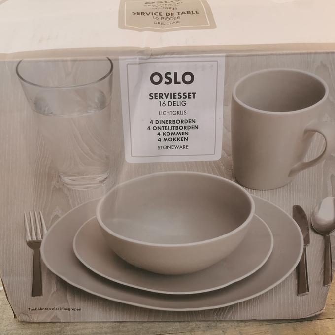 Productbeschrijving: Met deze stijlvolle 15-delige serviesset Oslo (lichtgrijs) ben je klaar voor iedere maaltijd. De set bestaat uit: 4 dinerborden, 3 ontbijtborden, 4 kommen en 4 mokken in het lichtgrijs en is daarmee geschikt voor 4 personen.