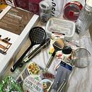 Bestaande uit: Bamboe schoenenrek, muffin bakvorm, 33cl rode wijn glazen, Brabantia Senseo pad houder, magnetron bakje, glazen vershouddoos, limonadekan, vershoudpot, lekker & Simpel kookboek, pizzasnijder, kaasschaaf, zeef, knijptank, geurstokjes, champagne glazen, douche zuighaken, 40 waxinelichtjes, theelichtjes houder, knijpers, kledinghangers, 10 extra zachte en dikke handdoekjes, pannen onderzetterss, koeltas, emmer, twee Colgate tandenborstels, 4 keukendoeken en een opblaas luchtbed