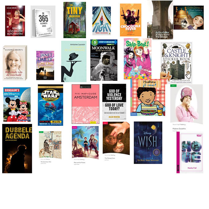 Partij Mica tuinmanden (16x) en boeken (153x)