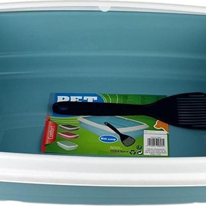 Productbeschrijving: Een praktische, handige en goede kattenbak met schep en morsrand. Ideaal voor kittens en kleine hondjes.