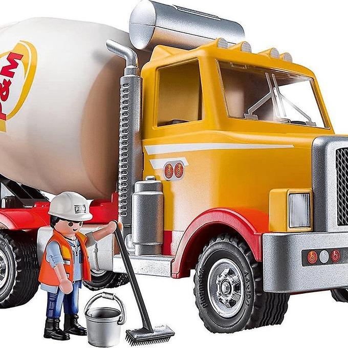 Productbeschrijving: Maak je Playmobil bouwplaats compleet met deze Amerikaanse Playmobil betonmixer vrachtwagen. Het dak van de cabine is afneembaar en de betonmixer kan door middels van een slinger draaien. Aan de achterzijde van de Playmobil betonwagen zit een trekhaakkoppeling waardoor je er een aanhanger mee kunt trekken. Inclusief 1 Playmobil speelfiguur.