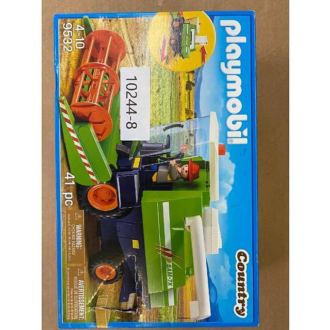 Productbeschrijving: Playmobil 9532 maaidorser. Het graan kan worden geoogst! De boer neemt plaats in de Playmobil combine en gaat aan het werk. De stroblokken kunnen boven in de maaidorsmachine worden ingevoerd waarna ze tijdens het rijden er aan de achterkant weer uit komen. Inclusief 1 Playmobil speelfiguur.