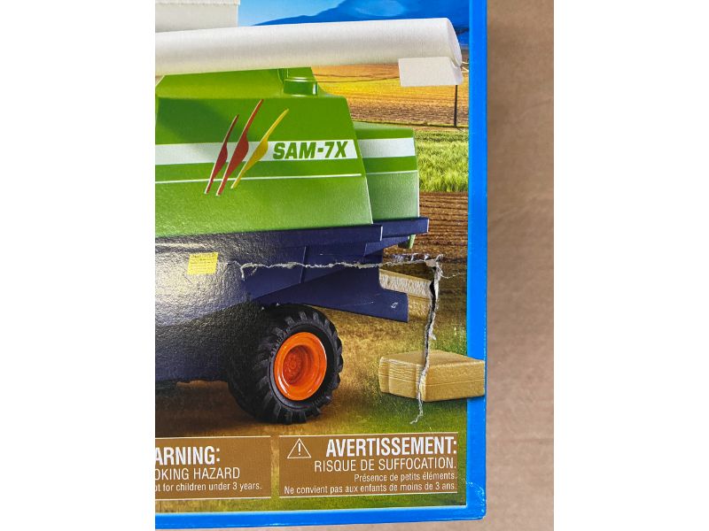 Productbeschrijving: Playmobil 9532 maaidorser. Het graan kan worden geoogst! De boer neemt plaats in de Playmobil combine en gaat aan het werk. De stroblokken kunnen boven in de maaidorsmachine worden ingevoerd waarna ze tijdens het rijden er aan de achterkant weer uit komen. Inclusief 1 Playmobil speelfiguur.