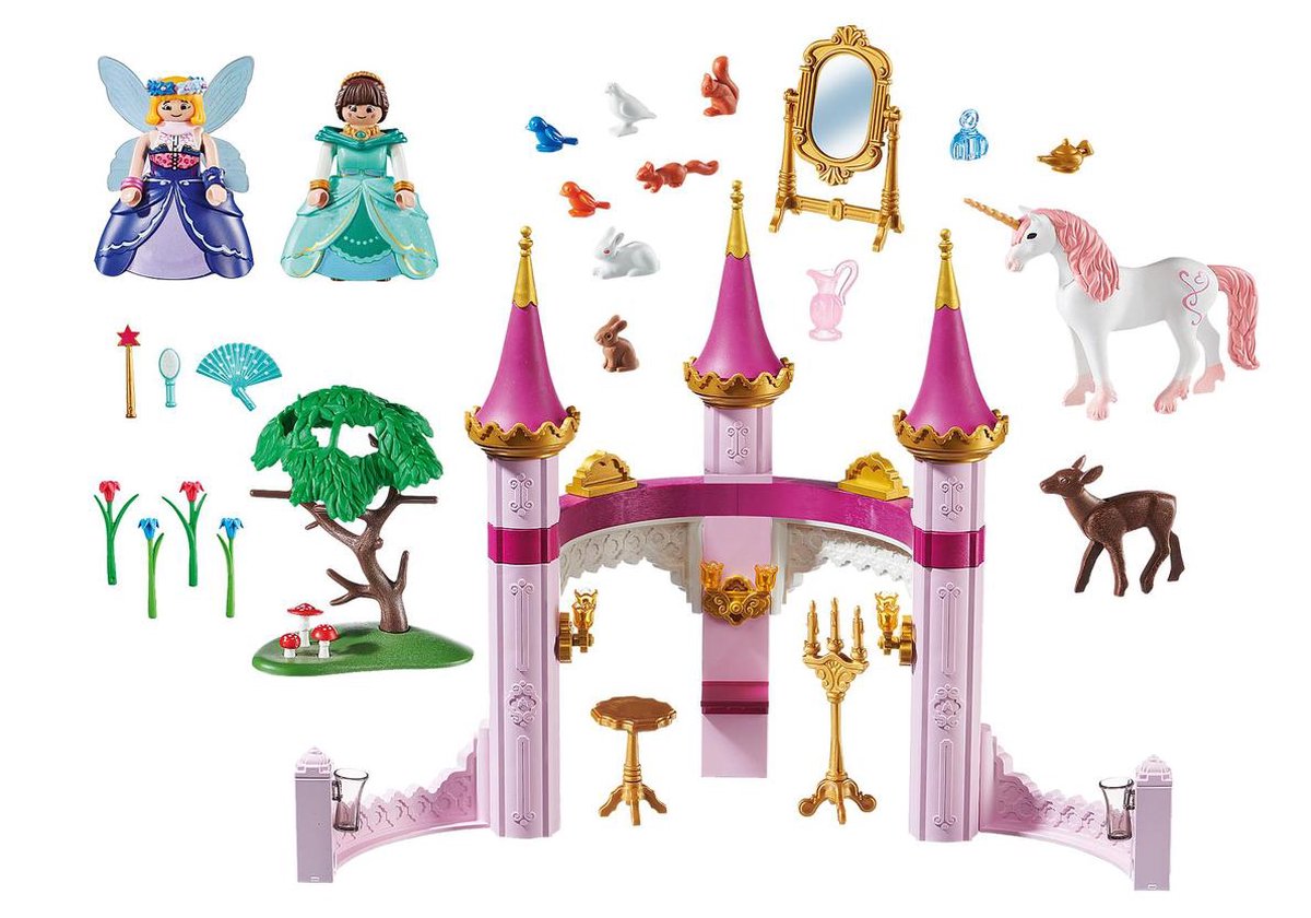 Productbeschrijving: Marla in haar baljurk en de Goede Fee in het Sprookjeskasteel. Met veel accessoires, schattige bosdieren en een eenhoorn.