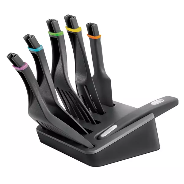 Productbeschrijving: Click n Cook is essentieel in iedere keuken. Met dit modulaire spatelsysteem heb je al je belangrijke gereedschap voorhanden. Eén ergonomische steel en vijf losse opzetjes, inclusief opbergblok. Ga je vis bakken? Hamburgers? Of toch liever pannenkoeken?