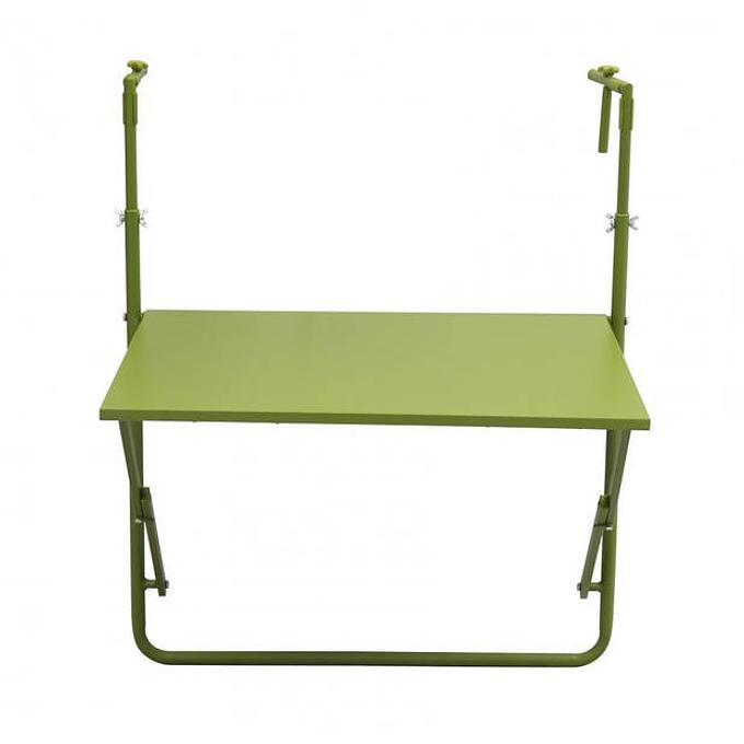 Productbeschrijving: Deze balkontafel van het merk Royal Patio is gemaakt van een stalen frame en tafelblad in de kleur groen. De balkontafel kan je ophangen en is inklapbaar waardoor deze ideaal is voor op het balkon. Met deze balkontafel kan jij genieten van een drankje op je balkon zonder daar veel ruimte voor kwijt te zijn. Daarnaast is dit tuinmeubel onderhoudsarm waardoor jij optimaal kan genieten. De afmeting van deze tafel is : 64,8 x 63 x 79 cm en dit tuinmeubel valt binnen de Toronto serie van het merk Royal Patio