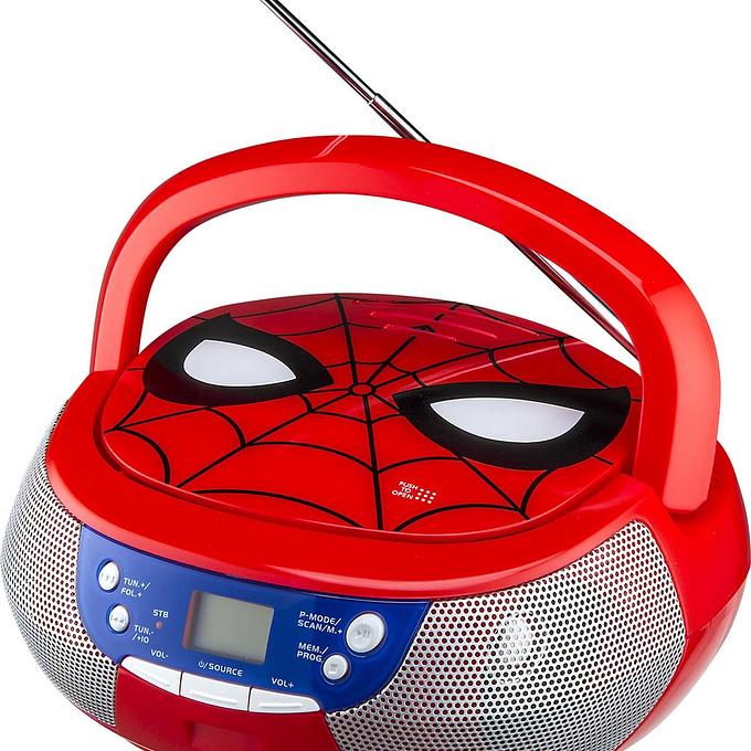 Productbeschrijving: Deze CD-boombox is uitgevoerd als Spiderman en is een leuke toevoeging op je Marvel collectie. Met deze CD-speler kun je nu volop genieten van al je favoriete muziek! Zet de boombox op je nachtkastje en genieten maar.