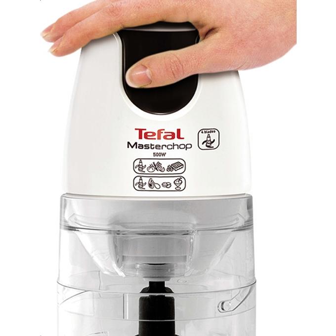 Productbeschrijving: Met de Tefal MB450B hakmolen hak, mix en maal je diverse ingrediënten, zoals groenten en fruit maar ook chocolade of noten. De mixfunctie gebruik je voor vloeibare ingrediënten; handig voor het bereiden van bijvoorbeeld babyvoeding. Met slechts één druk op de knop gaat de hakmolen aan het werk, lekker eenvoudig dus. De kom heeft een inhoud van 500 milliliter met maataanduiding, hierdoor voeg je direct de juiste hoeveelheden toe. Dankzij zijn compacte formaat berg je de hakmolen na gebruik weer gemakkelijk op in je keukenkastje. De losse onderdelen mogen in de vaatwasmachine; hoef je ze niet met de hand af te wassen.