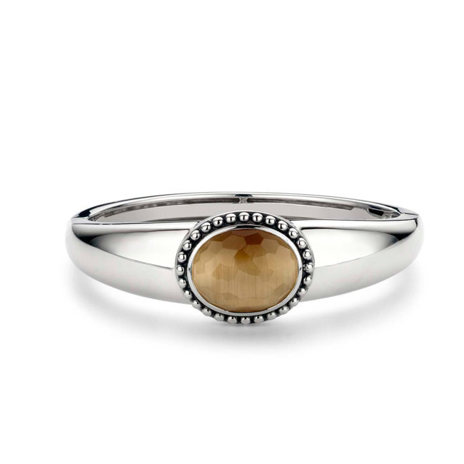 Productbeschrijving: Ti Sento Milano armband Met één grote ovalen gefacetteerde licht bruine zirkonia in parelrand zetkast Met scharnier sluiting Binnendiameter 59mm