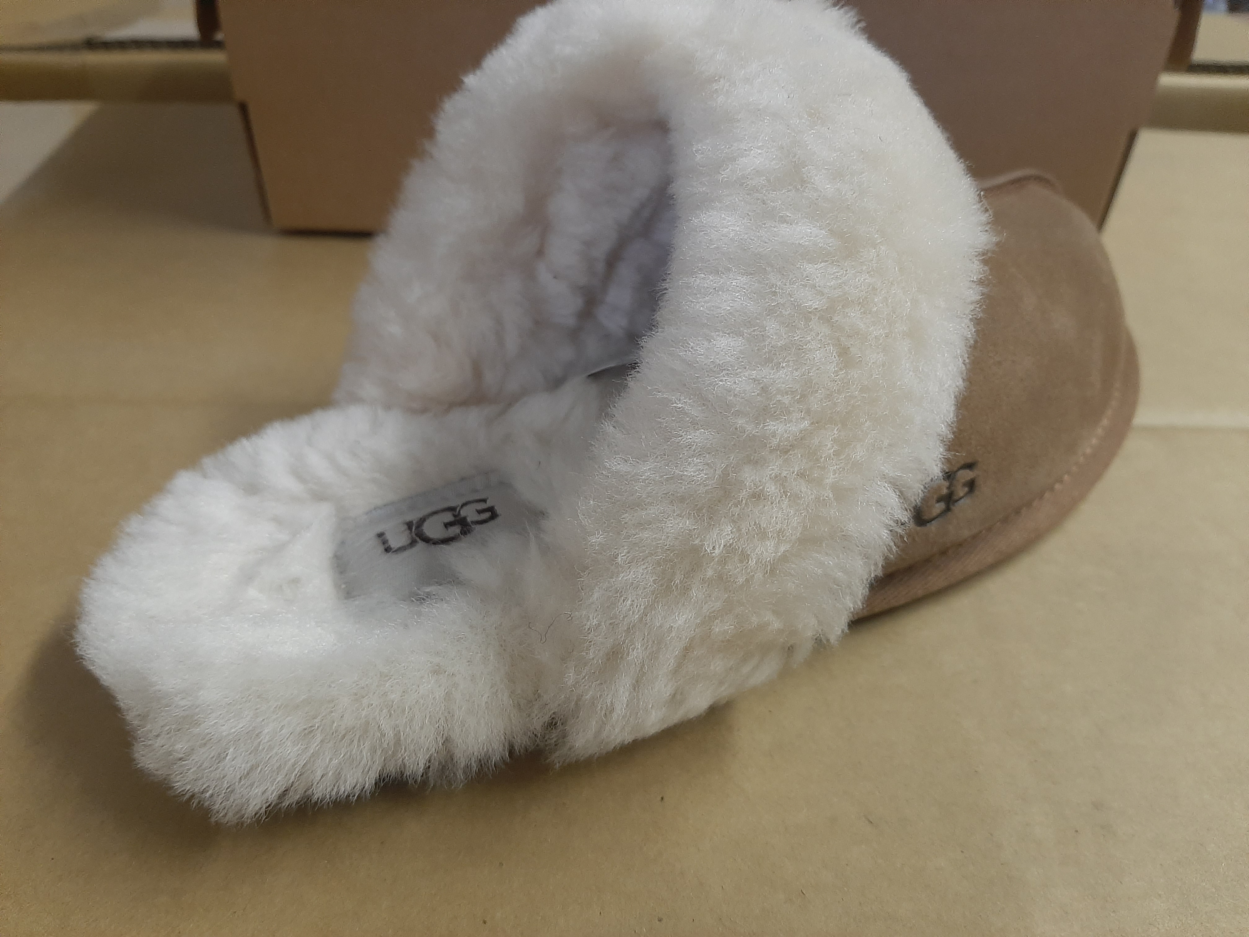 Productbeschrijving: Deze knusse pantoffels zijn gemaakt van Nieuw-Zeelandse schapenvacht en passen bij elke gelegenheid, waar je die extra gezelligheid en warmte nodig hebt. De schoenen zijn aan de binnenkant gevoerd met zacht schapenvacht en aan de buitenkant is suede huid, die in het midden aan elkaar is genaaid.