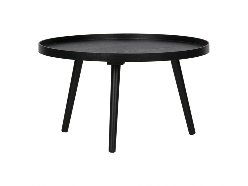 Productbeschrijving: De retro woonstijl bijzettafel Mesa in het zwart van het merk WOOOD, heeft een diameter van 60 cm en een hoogte van 34 cm en past in elke woonstijl van modern tot klassiek. De drie tafelpoten zijn van massief hout en het ronde tafelblad met opstaande rand is van MDF met houtnerf structuur.